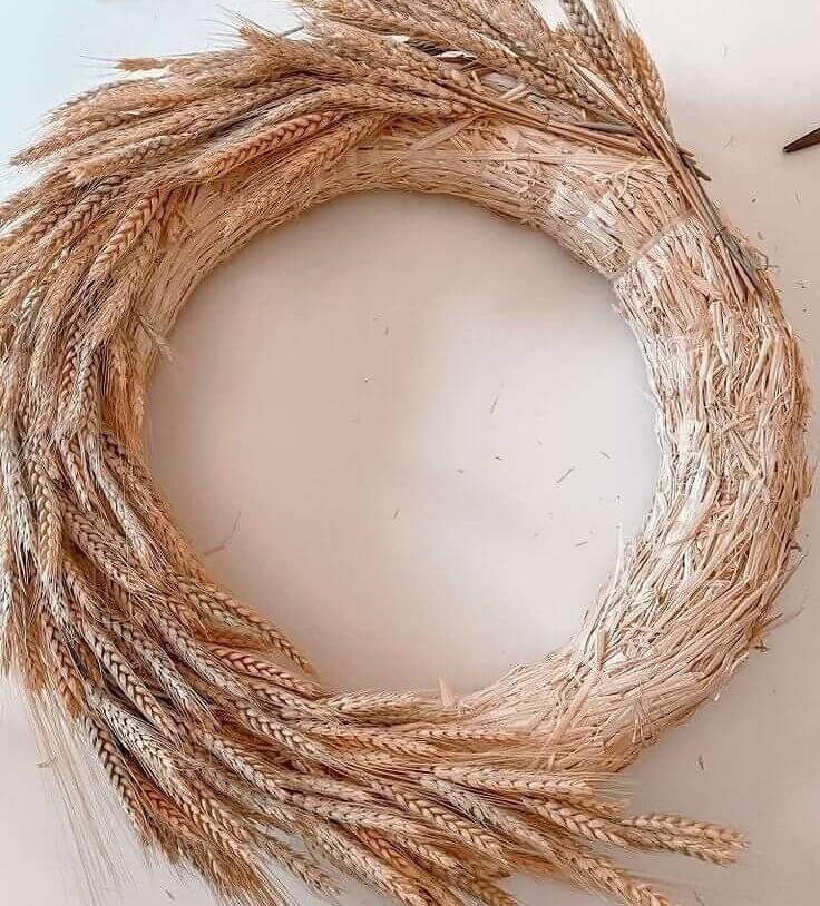 Crafting this wreath is easier than you might think. Start by gathering bundles of wheat and shaping them into a circle