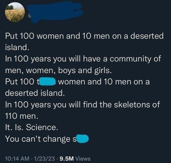 So, why does their gender identity even matter in this scenario? It doesn’t. The focus should be on whether they can thrive and coexist peacefully, not on irrelevant details. Trans people, like anyone else, deserve respect and acceptance without unnecessary scrutiny. Instead of fixating on hypotheticals, let’s hope they all managed to build a supportive and inclusive community on that island. After all, isn’t that what truly matters—creating spaces where everyone can feel valued and understood?