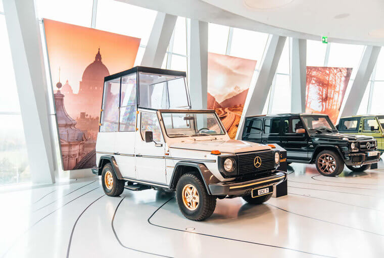 If you're the Pope, you've got to travel in style. That's why the Vatican guards decided that a Mercedes would be best for when his holiness is trekking around town. However, they also realized that they have to protect the Holy Father in case any heretics are present on the day of a parade. So, how do you account for that? Kaboom! Bulletproof box all around the top of the viewing platform.