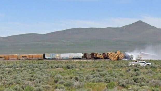 We use many idioms to describe unfortunate events, from a car crash and train wreck to dumpster fire, SNAFU, and clusterf**k, but here's an actual train wreck. The Google Van Driver was minding their own business, driving on the I-80 near Wells, Nevada, USA, when they came across this accident and caught it on camera. Since there's an emergency truck in the middle ground, the photo was probably snapped in the aftermath of the derailment.