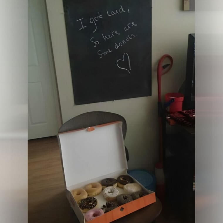 Not all roommates end up being horror stories that you tell your friends and children about in the future. Sometimes, roommates can be quite a blessing. This person's roommate realized that she was very loud the night before (maybe she had a small party or had a particularly rowdy guest over), but she wanted to make it up to her friend and loving partner. She bought a box of donuts and wrote a little apology.