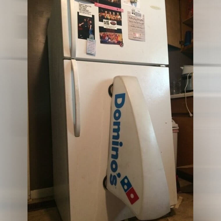 It is hard to say what is more alarming when you look at this photo. Is it the fact that there is a massive magnet in the shape of a shark fin plastered in this person's refrigerator? Or is it the fact that it belongs to Domino's Pizza? Or maybe it is the fact that someone managed to find a magnet that large in the first place. Whichever it might be, it is impressive that someone located this magnet shark fin.