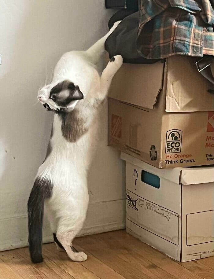 Most people were led to believe that only the owl could twist its head to such an angle and degree. It's strange to see that a cat also is able to.